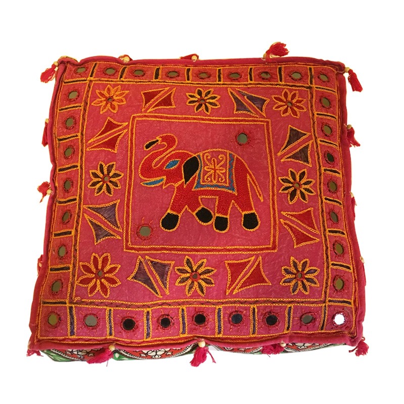Cushion Handmade In India.(Dimensions and Colors may vary Slightly)approx. 16”x16”x4”Removable Cotton Cover with Zipper for Handwashing.