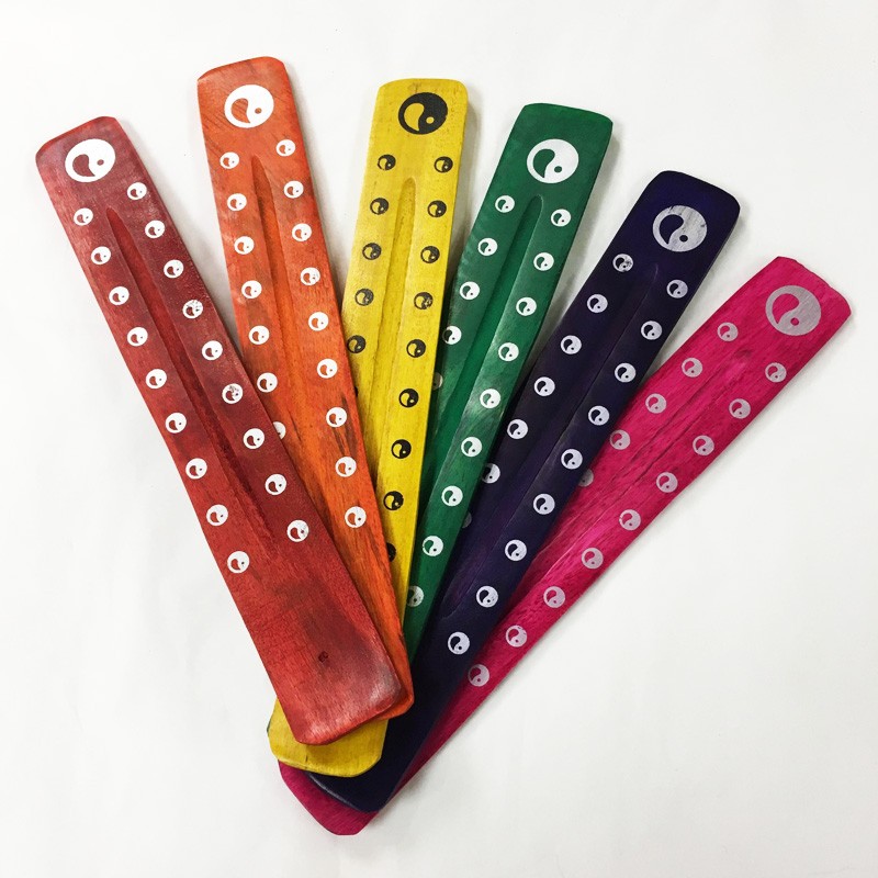 Wooden Flat Ash Catcher that Holds most Standard size Incense Sticks.Handcrafted and Hand painted in India.