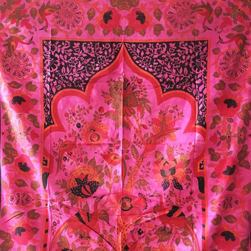 This tapestry is made in India from 100% cotton and measures approximately: 60″x90″ (Twin Size).Disclaimer* Colors may vary from photo depending on lighting. Cleaning directions: Washable alone, by hand or machine wash alone (cold water, delicate cycle). Do not tumble dry and iron backwards at ‘’cotton’’ temperature.