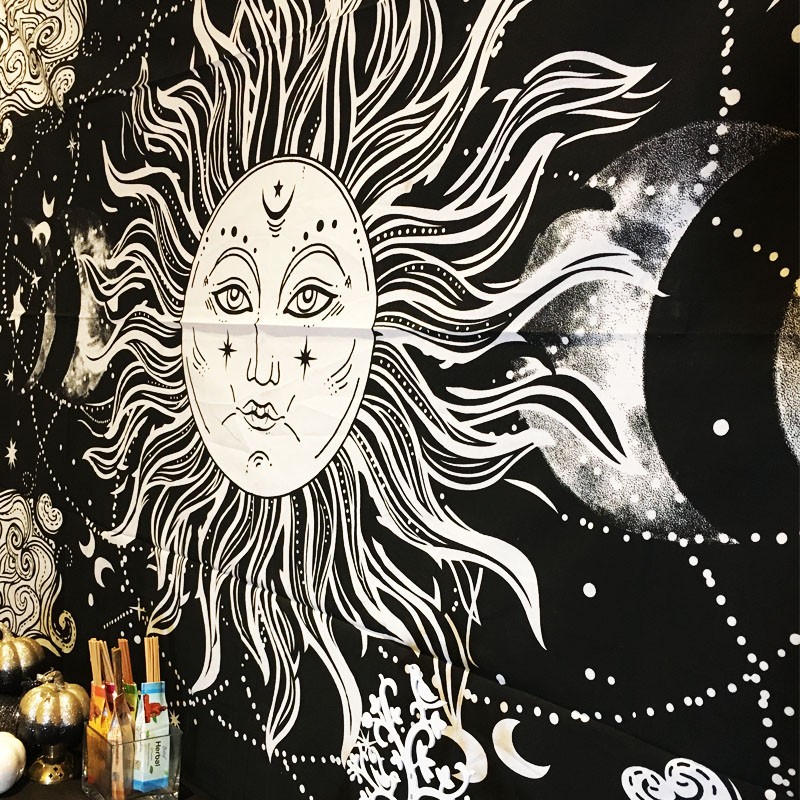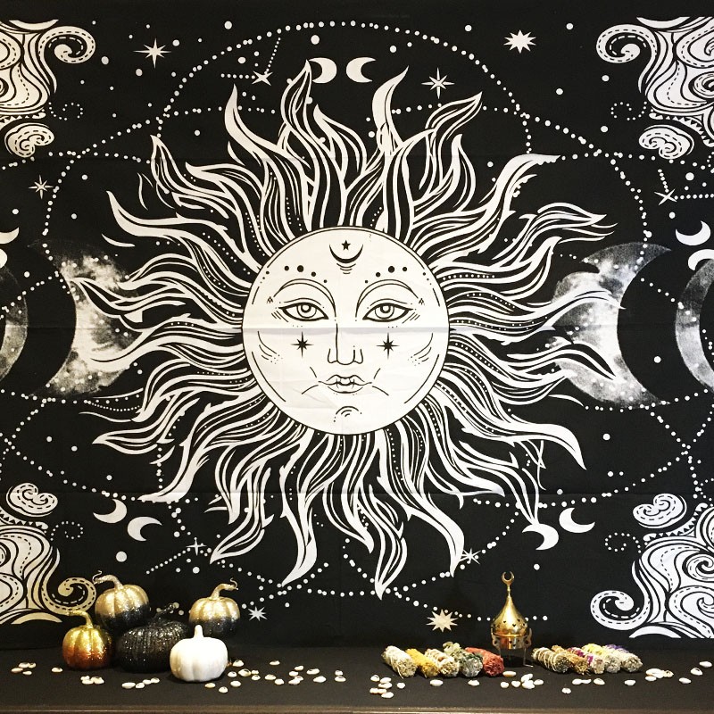 This tapestry is made in India from 100% cotton and measures approximately: 60″x90″ (Twin Size).
