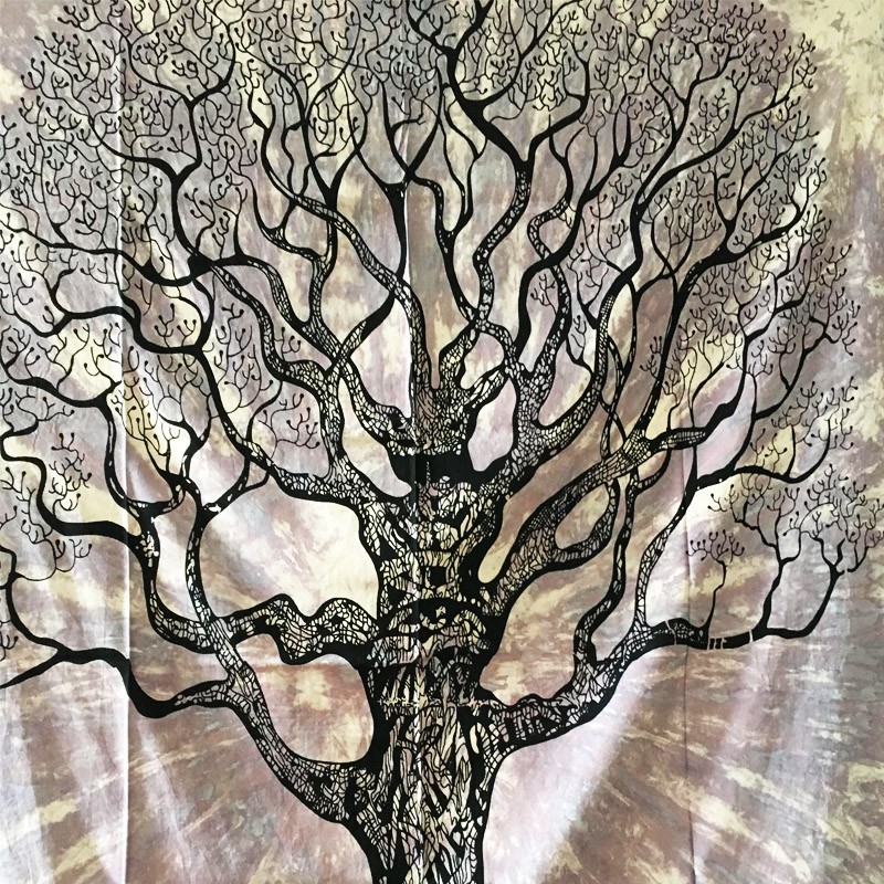 This tapestry is made in India from 100% cotton and measures approximately: 60″x90″ (Twin Size).