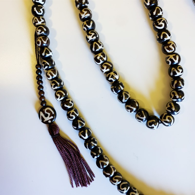 Elastic Tibetan Mala – Black Painted Wood (Small)
