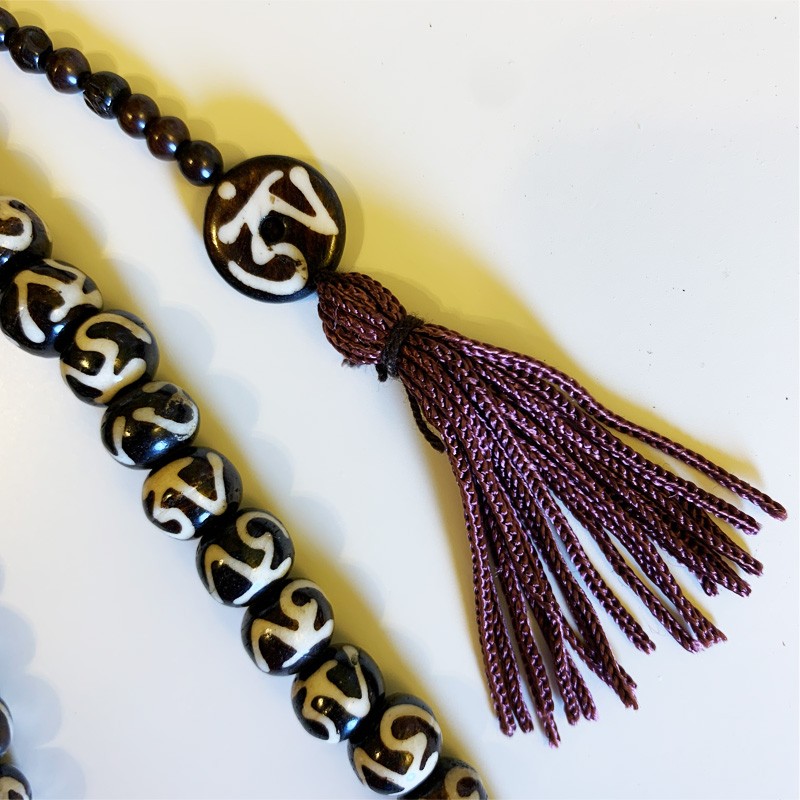 Elastic Tibetan Mala – Burgundy Wood (medium)